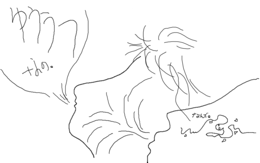 この絵は学生時代に描いたものを縮小トレースしました。やり場のない気持ちが溜まってくると、何かしら書いて、描いて発散していたなぁ。発散し切れることは、なかったけれど……