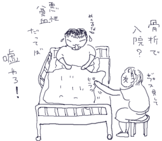 来てくれた友人は、私があまりにもヤンチャであったのを知っているので、病室に入るなり第一声が「骨折で入院したっちゃろ?」でした。当時、『病名は悪性貧血』と聞かされていた私は、毎回「悪性貧血だって」と答えては「まったまた、嘘やろー」というやりとりを嫌になる程繰り返しました。