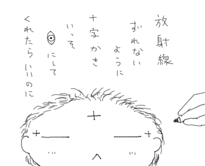 照射位置がずれないようにつけるのだと太書きペンで十字を書かれました。